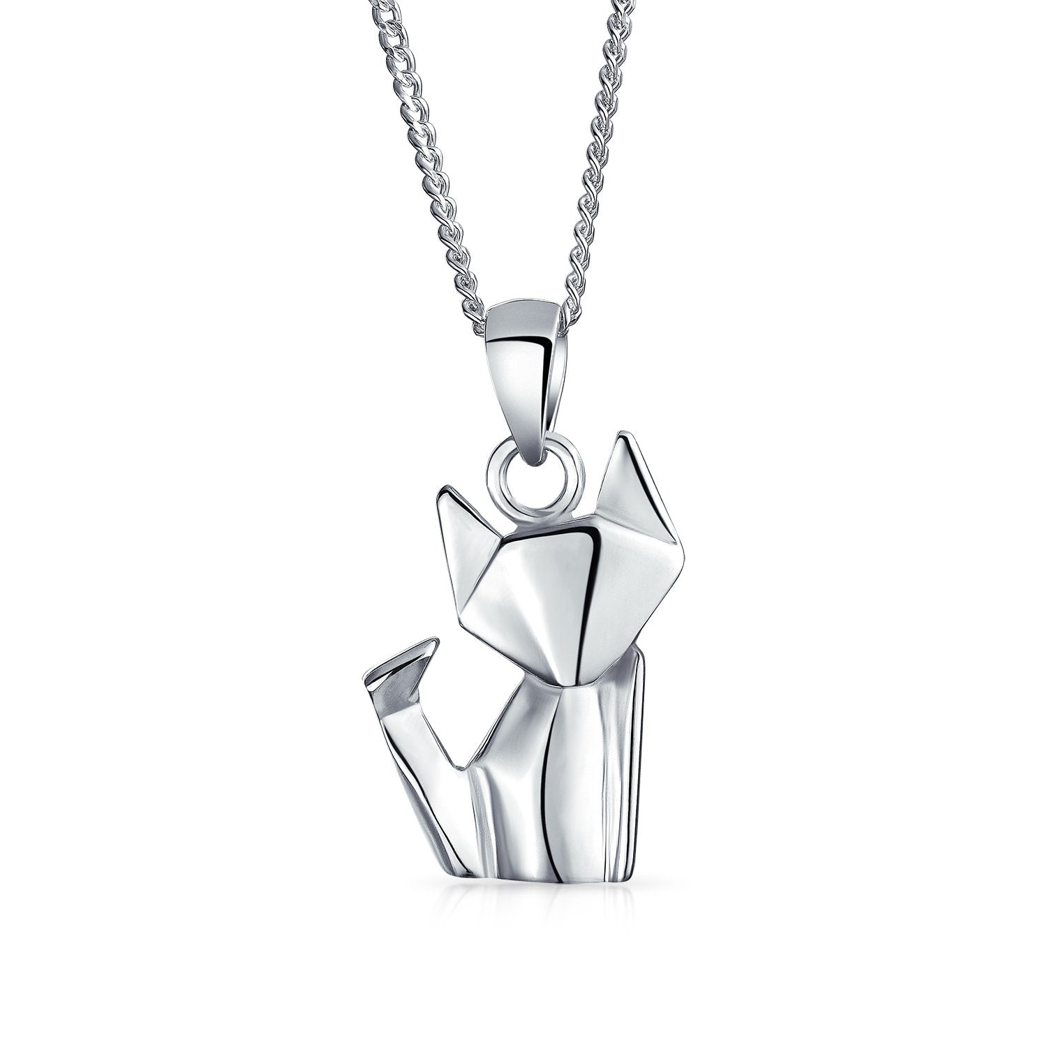 3D Geometric Origami Jewelry Animals Kitten Cat Pendant Necklace For Women Teen .925 Sterling Silver
