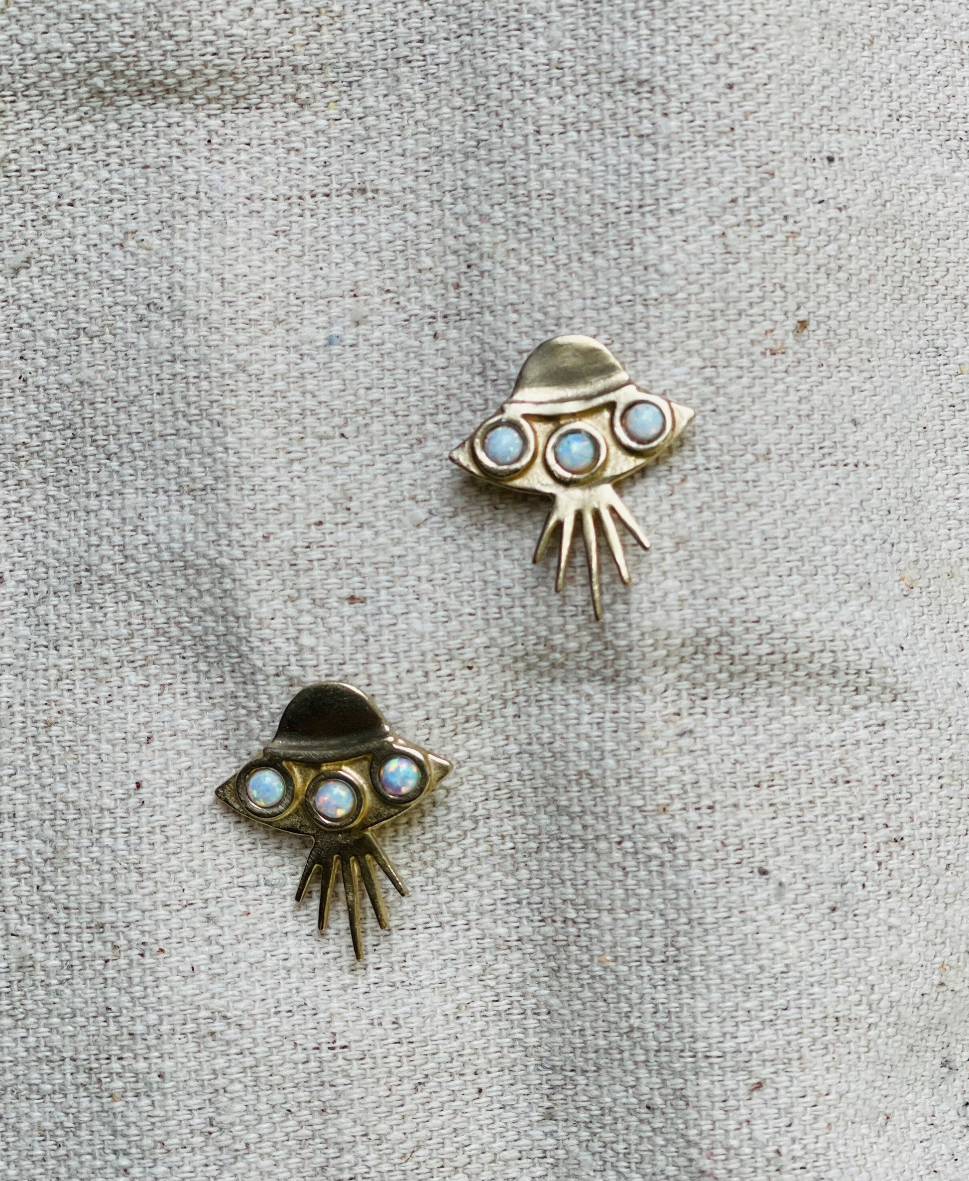 These unique earrings were handmade using traditional metalsmithing techniques and the lost wax casting process.