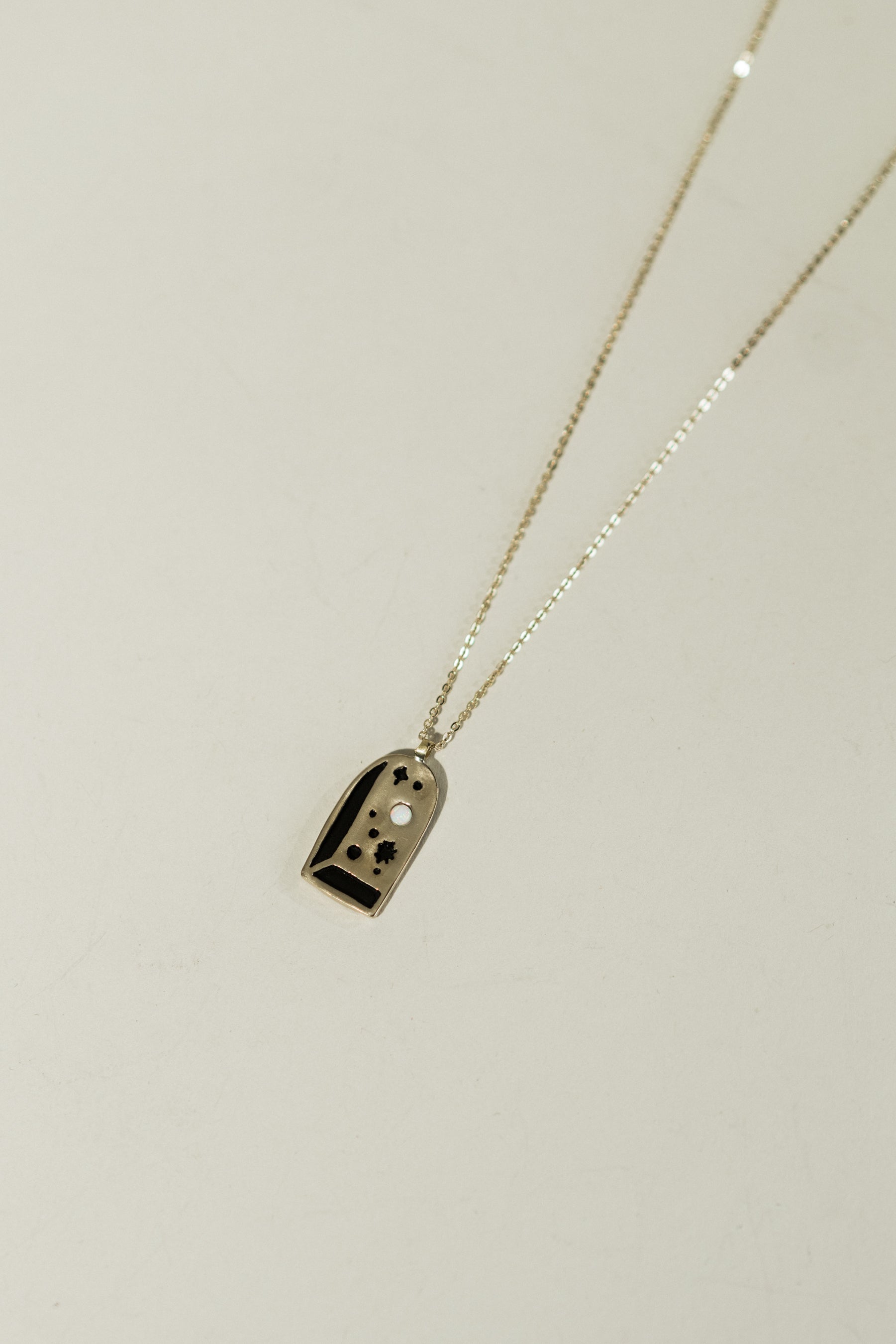 Features a hand-carved brass pendant with a 3mm opal on an 18" gold-plated chain.