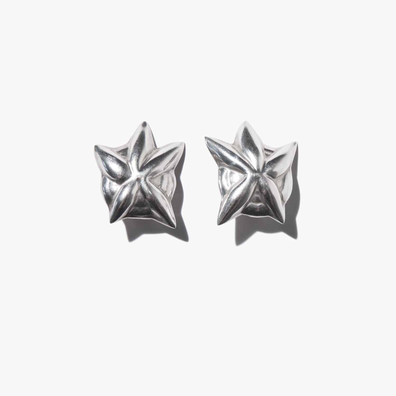 Sterling silver clip-on earrings with a sculptural, organic shape.