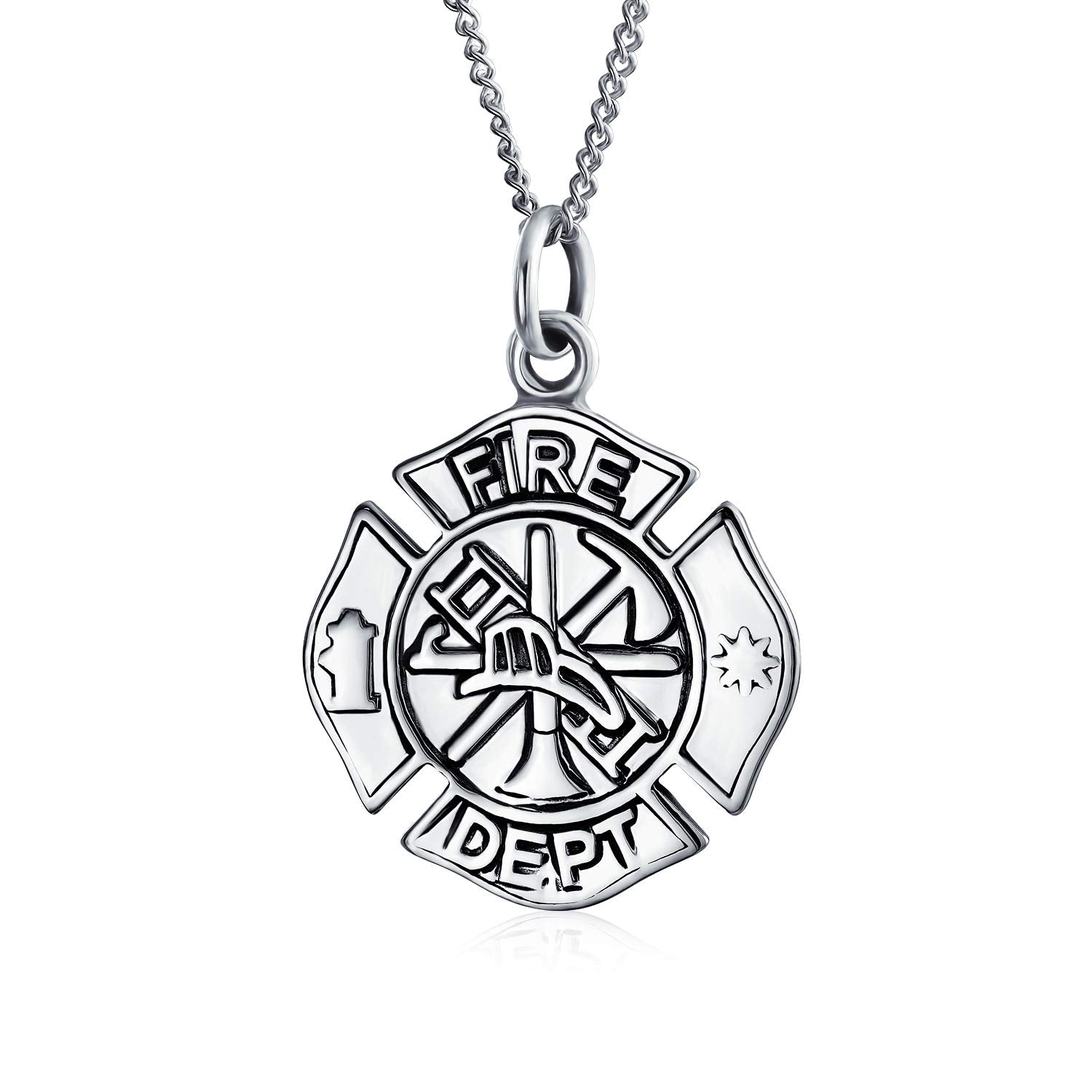 Bling Jewelry Round Small Firefighter Fire Dept Shield Medallion Pendant Necklace For Firemen Wife For Women Sterling Silver 16 Inch