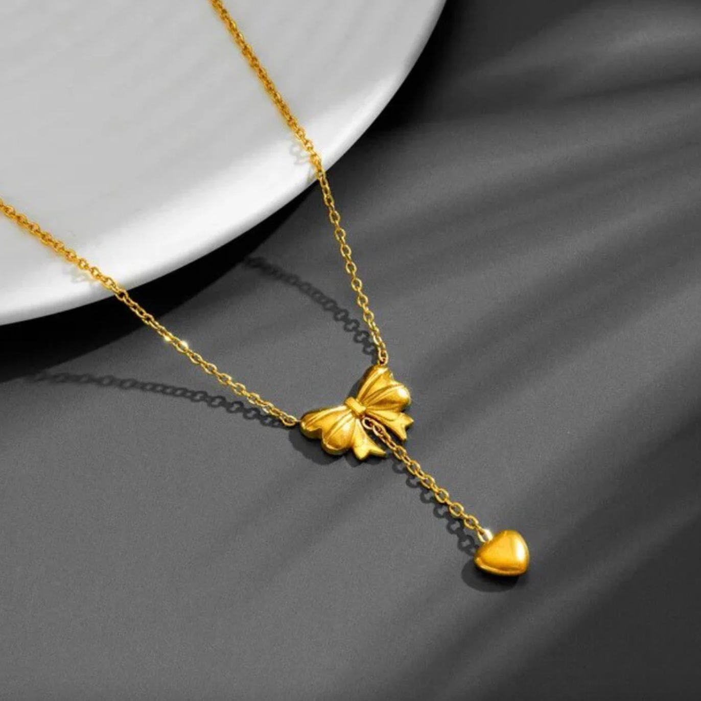 - bow and heart beautiful necklace, dainty