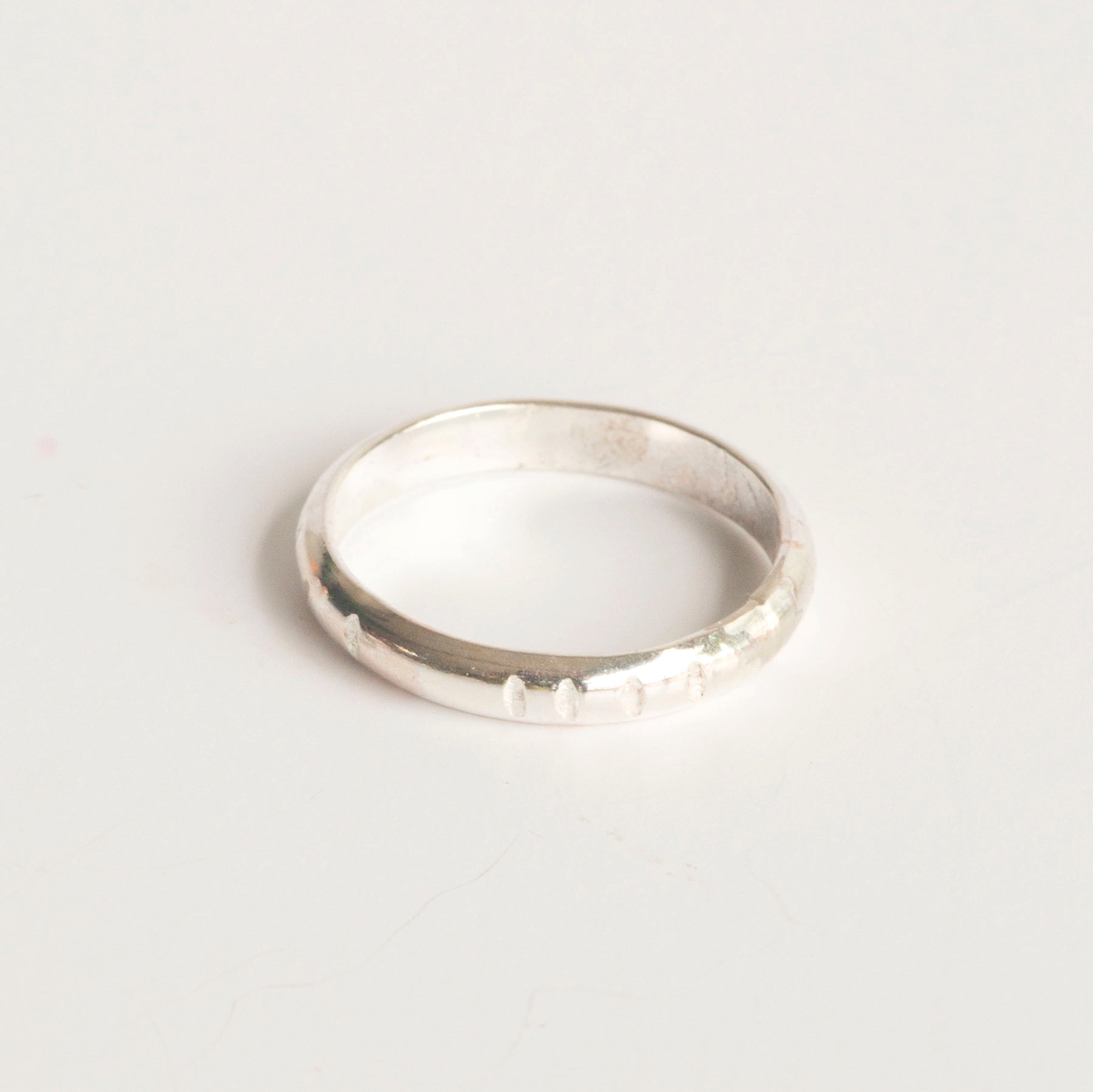 A comfortable chunky stack ring with hand-etched detailing.