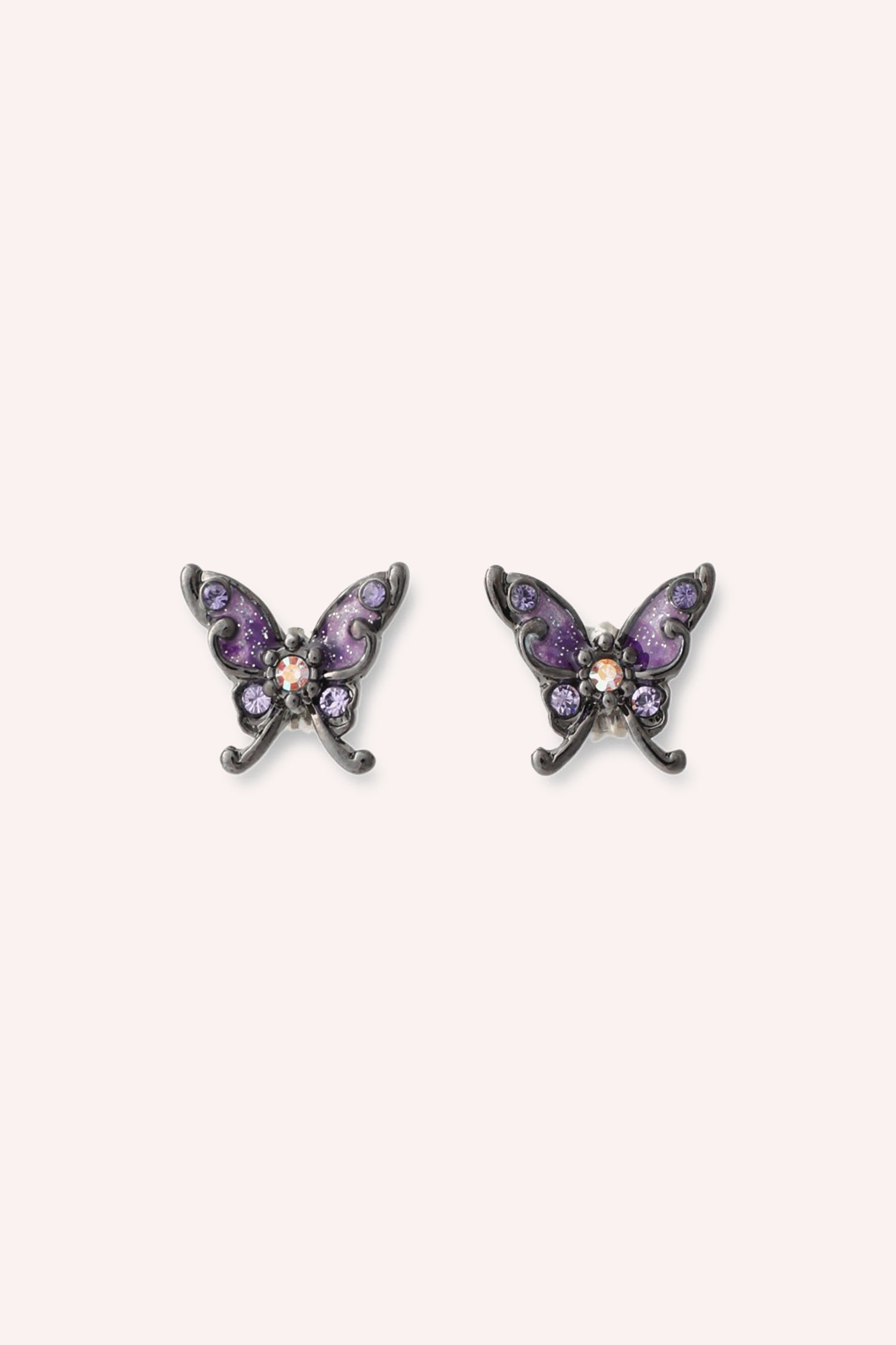 - Black Toned and Purple Butterfly Stud Earrings Embellished with Gems