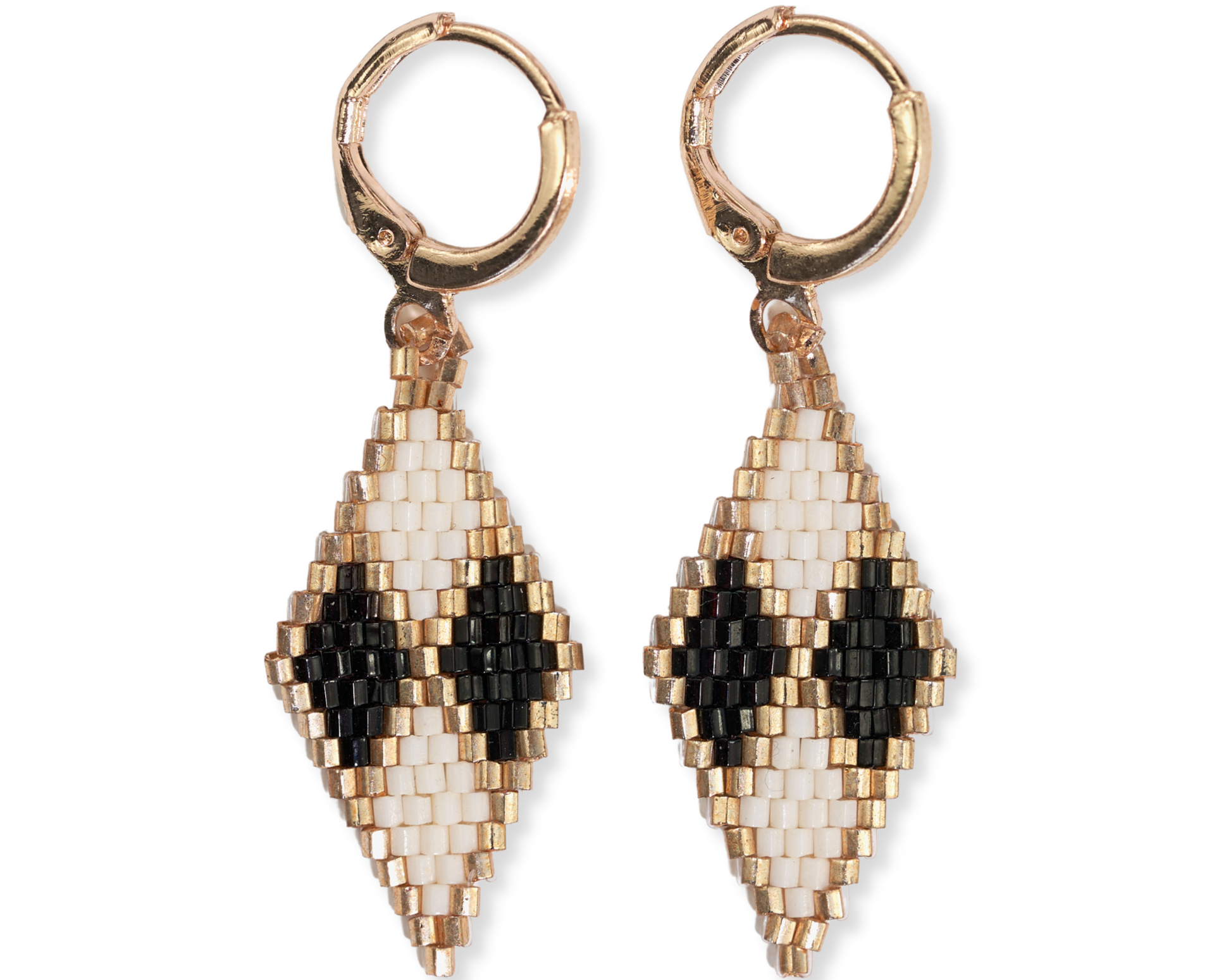 Carmen Mini Gold Hoop Diamond Pattern-Black/White