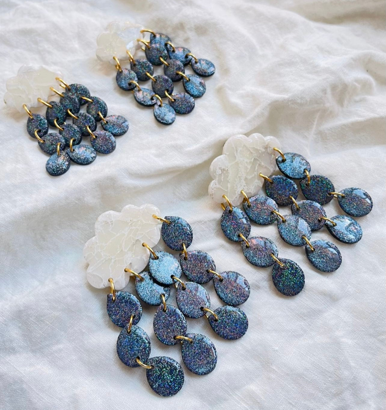 Each raindrop is hand formed, 24 raindrops per pair of earrings.
