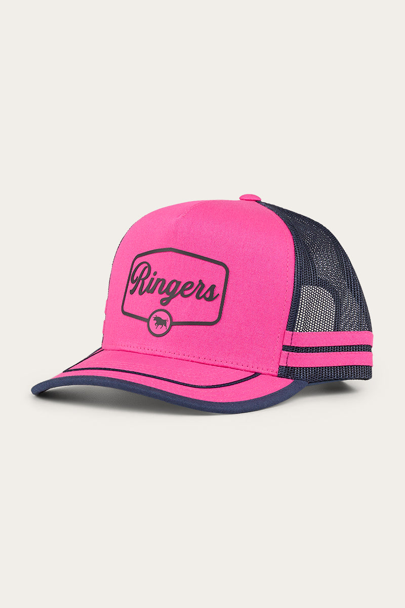 Our Ringers Western trucker caps represent the heart and soul of everything we stand for. This cap has a premium-quality mesh back and metal eyelets for optimal ventilation, ensuring all-day comfort on sun-soaked days. The structured front panel proudly displays a Ringers Western logo, symbolising spirit and tradition. The classic snap-back closure offers an adjustable fit for most head sizes. Whether you’re out travelling the open road, attending a local festival or just representing the brand, our trucker caps have you covered.