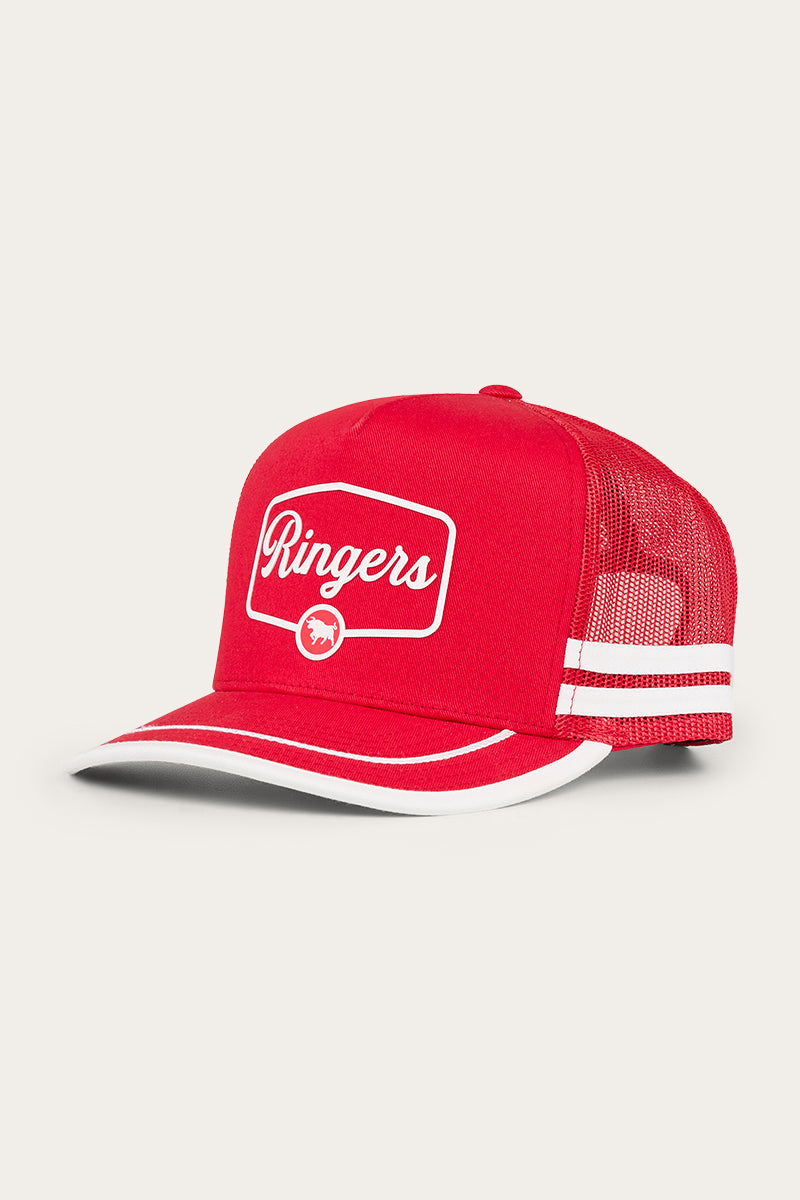 Our Ringers Western trucker caps represent the heart and soul of everything we stand for. This cap has a premium-quality mesh back and metal eyelets for optimal ventilation, ensuring all-day comfort on sun-soaked days. The structured front panel proudly displays a Ringers Western logo, symbolising spirit and tradition. The classic snap-back closure offers an adjustable fit for most head sizes. Whether you’re out travelling the open road, attending a local festival or just representing the brand, our trucker caps have you covered.