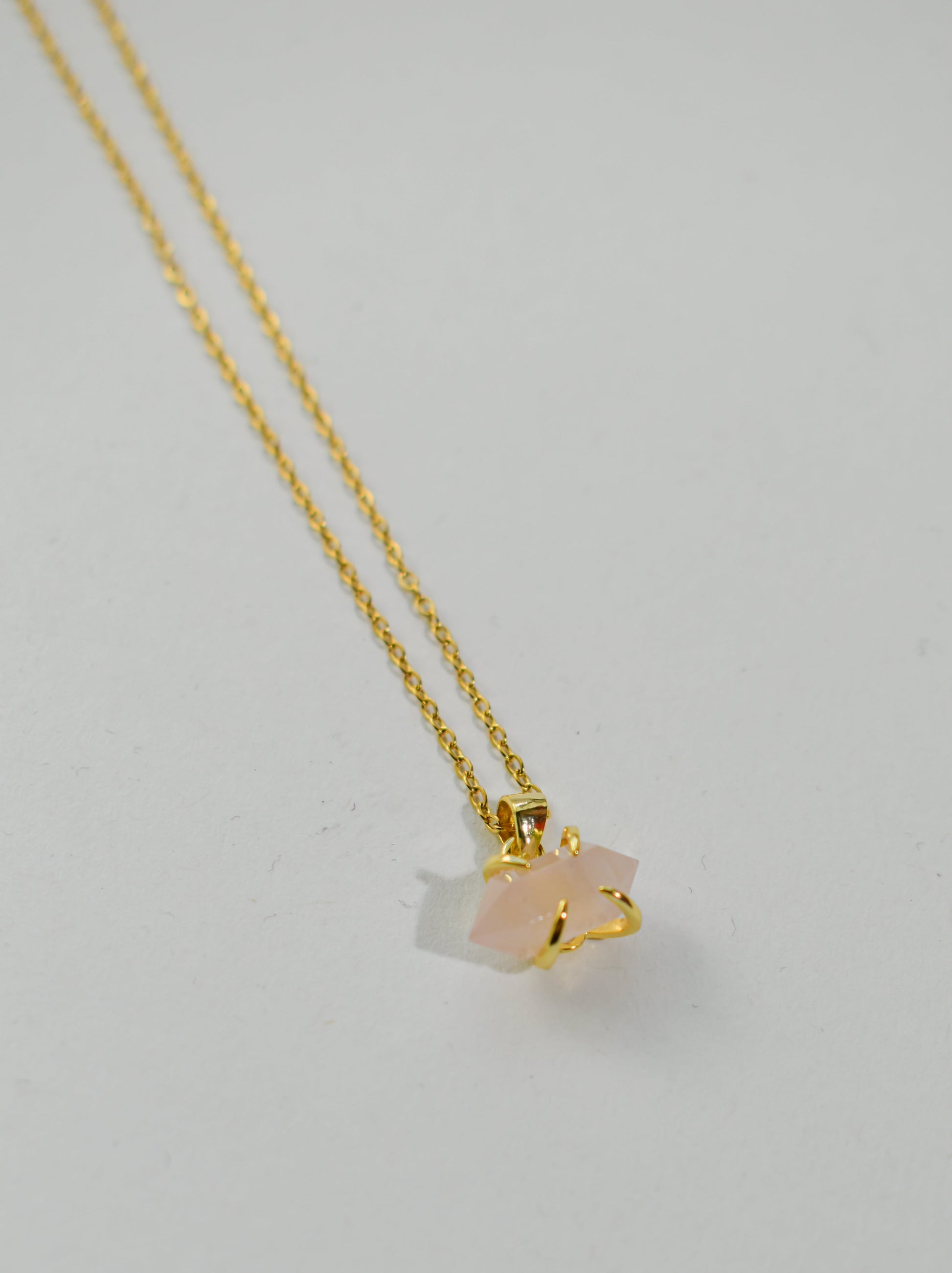 Brass inlay claw holding single Crystal in your choice of gemstone; hung from a light brass chai (18")