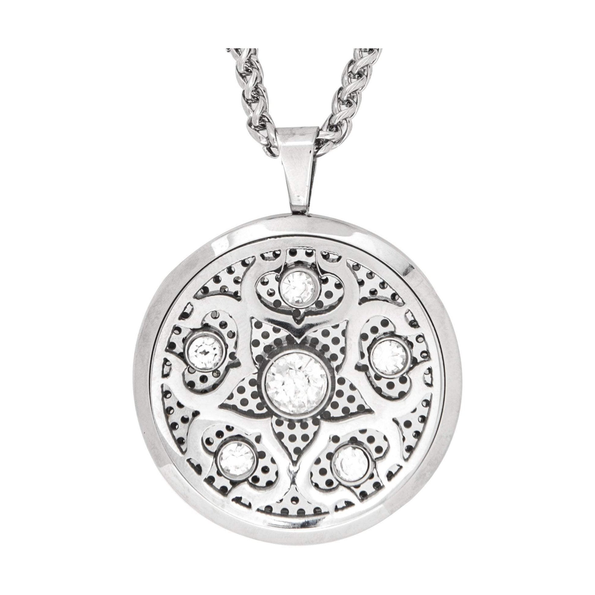 Enhance your retail clients’ overall well-being with the Serina and Company Crystalized Aromatherapy Locket Necklace. When an essential oil is applied to the wool pad inside, scent is diffused through vents in the locket, allowing clients to enjoy aromatherapeutic benefits any time and place. This beautifully constructed, high quality, stainless steel locket is embellished on both sides with crystals. Comes on an 18" surgical stainless steel chain.