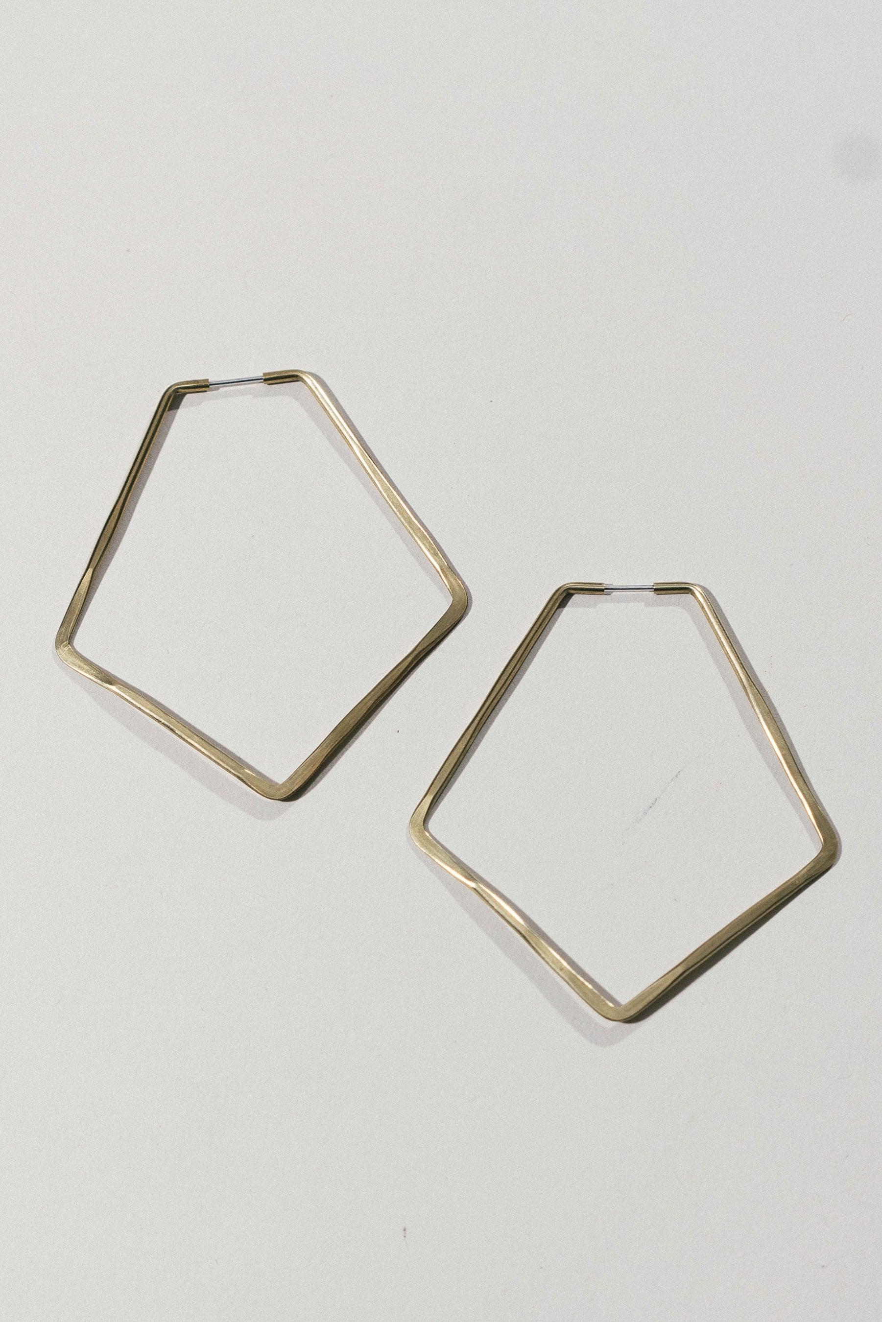 Each pair is hand forged in brass, leaving a reflective, hammered texture. All Geo Hoop styles are very lightweight, making them comfortable, everyday pieces, no matter what size.