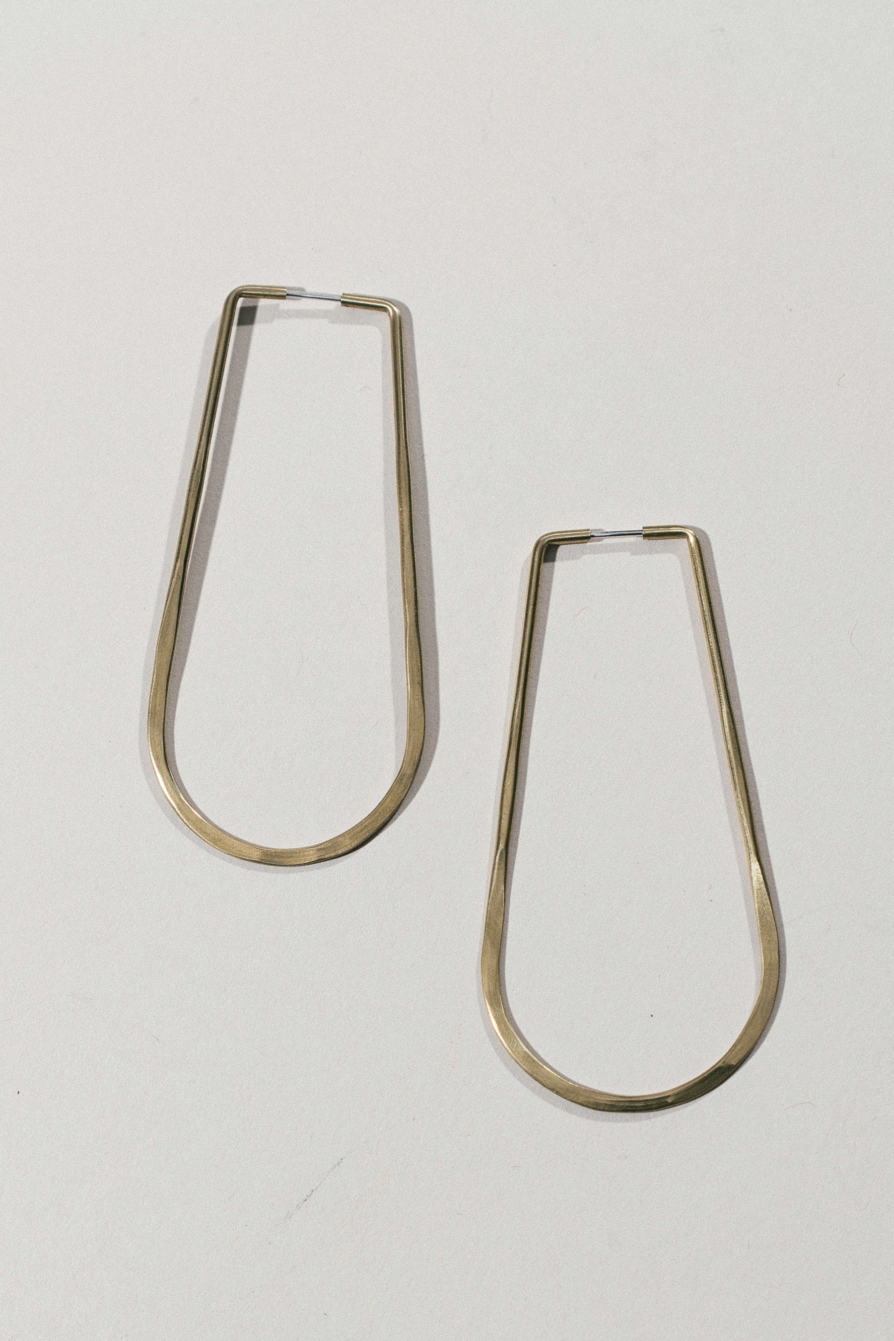 The Una Hoops are subtle and sweet. The Lita is a favorite from the smaller variety of Geo Hoops. Each pair is hand forged in brass, leaving a reflective, hammered texture. All Geo Hoop styles are very light weight, making them comfortable, everyday pieces, no matter what size.