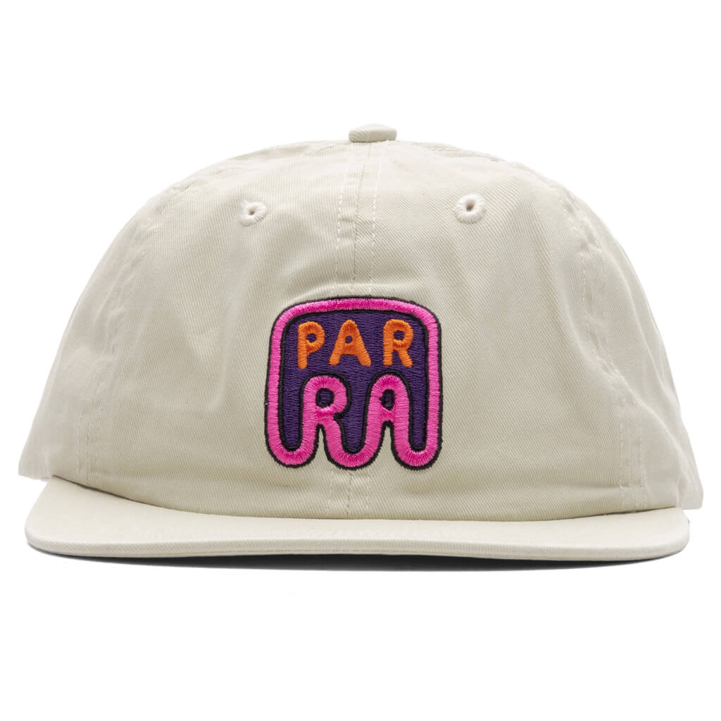 Introducing the Fast Food Logo Cap by By Parra. Crafted from 100% cotton, this cap features a fresh take on the brand's iconic logo at the crown. It's an easy way to add a touch of Parra's unique style to any outfit.