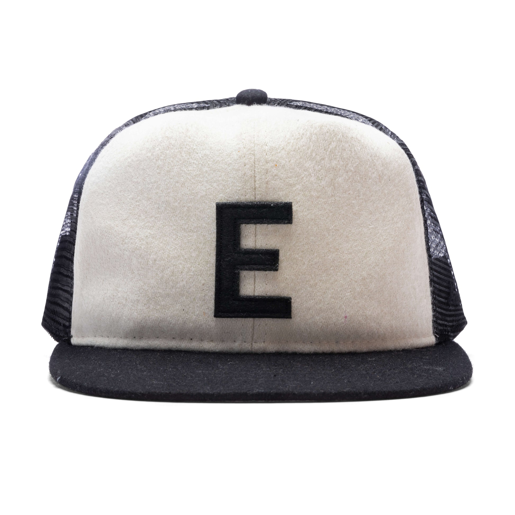 The Fear of God Essentials Trucker Hat makes an impression with its wool and polyester construction. A mesh backing is seen,while the felted upper and contrasting ‘E’ at the front of the crown makes an impression. The back is secured by a velcro fastening and finished with a rubberized Fear of God Essentials bumper.