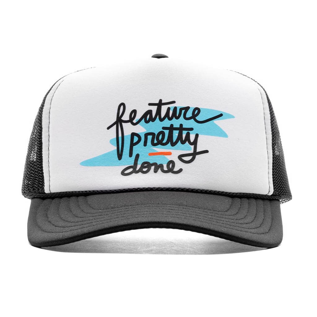 Our collaboration with local Las Vegas artist Pretty Done introduces the Lightning Trucker. Composed of polyester at the structured front, the hat utilizes a curved brim for added detailing. The signature FEATURE and Pretty Done collaborative logo graphic comprises the face. The mesh material at the quarter panels paired with the adjustable snapback closure completes the remainder of the silhouette.