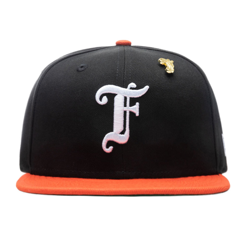 Feature x New Era Old English F Snapback Hat w/ Pin - Black/Orange