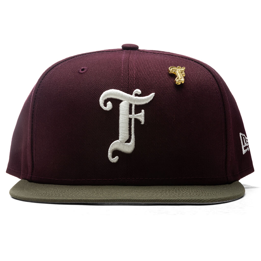 Feature x New Era Old English F Snapback - Maroon/New Olive