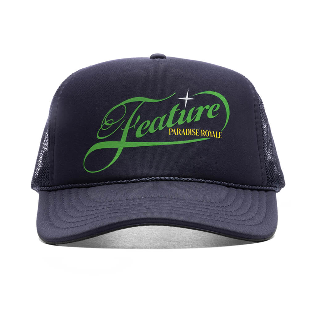 Our headwear collection’s latest arrival includes the FEATURE Paradise Royale Trucker. Taking on a polyester foam front, this exclusive trucker hat arrives in one size and utilizes a structured font and a curved brim. At the front of the design is screen-printed FEATURE branding along with a subtle star graphic and ‘All Things Good’ typography. An adjustable snapback closure at the rear secures the entirety of the silhouette.