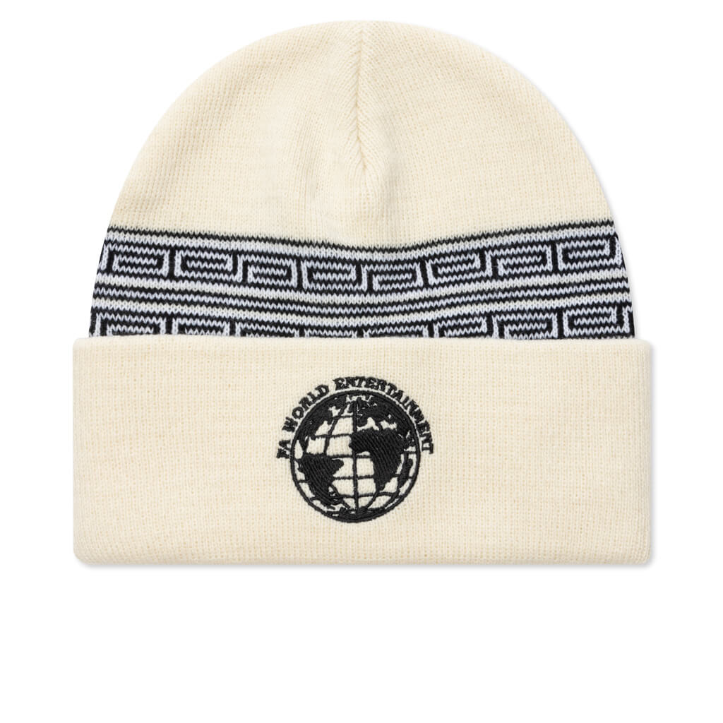Fucking Awesome reverts to contemporary styles with the Greek Cuff Beanie A premium acrylic base highlights knitted patterns that reflect the neutral tones. The singular cuff includes an embroidered motif at the base, tying everything together.