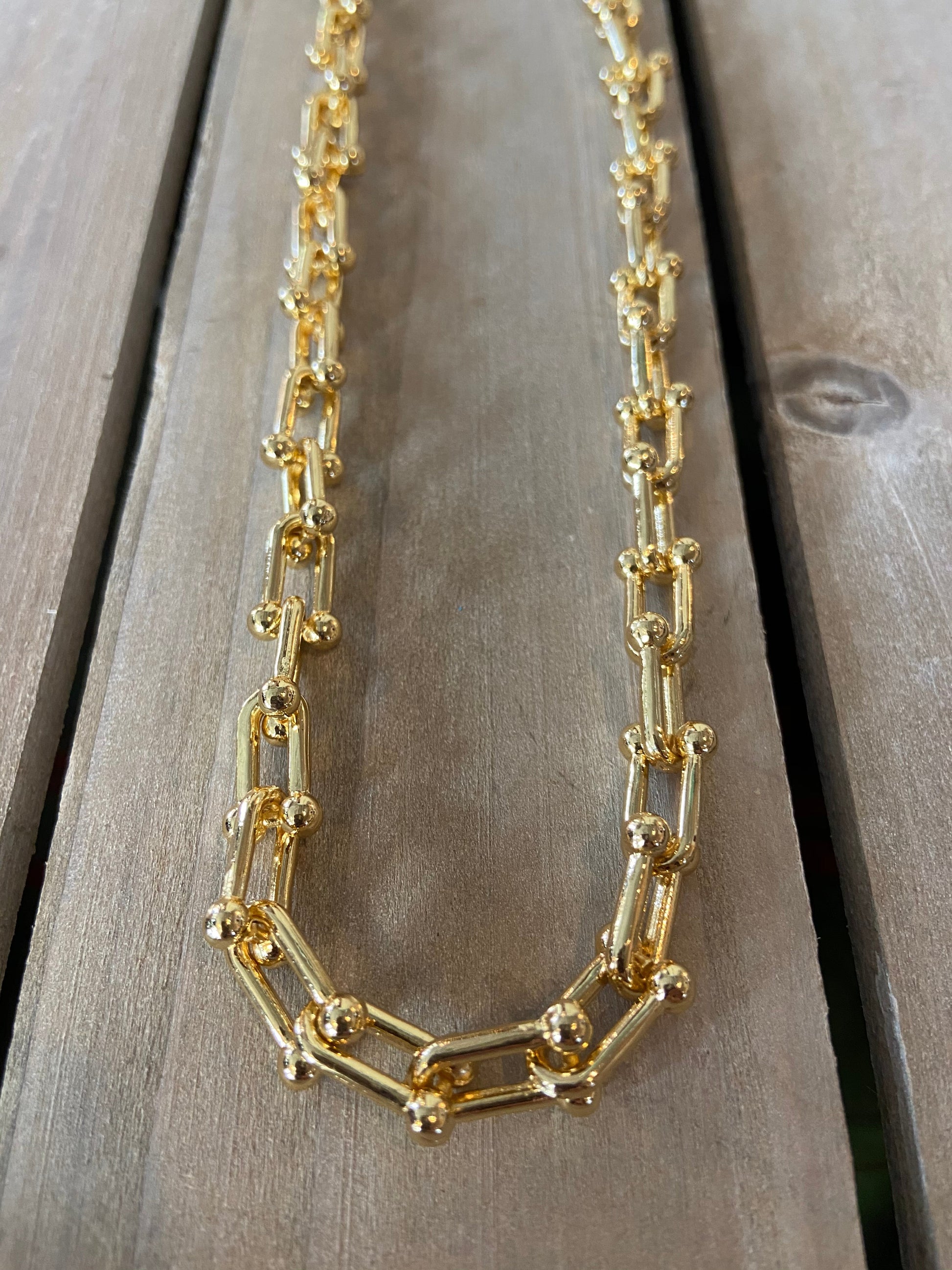 Heavy Gold Link Chain Necklace 16" gold plated with lobster clip, matching bracelet available.