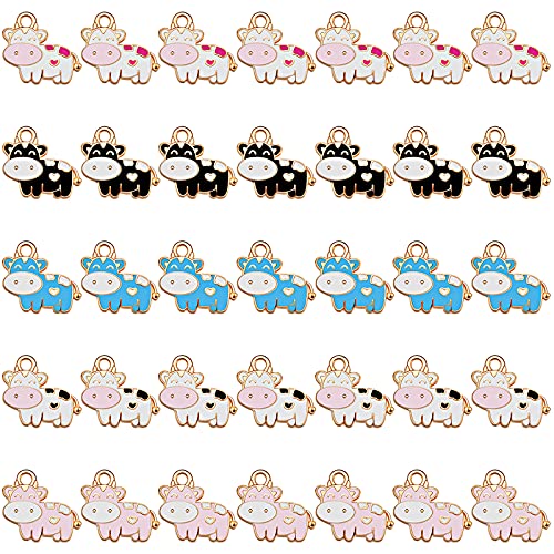 Hicarer 50 Pieces Cow Charms Pendants Colorful Enamel Cute Charms Pendants Jewelry Making Earrings Necklace Charms for Bracelet Necklace Earrings Keychain DIY Crafts, 5 Colors