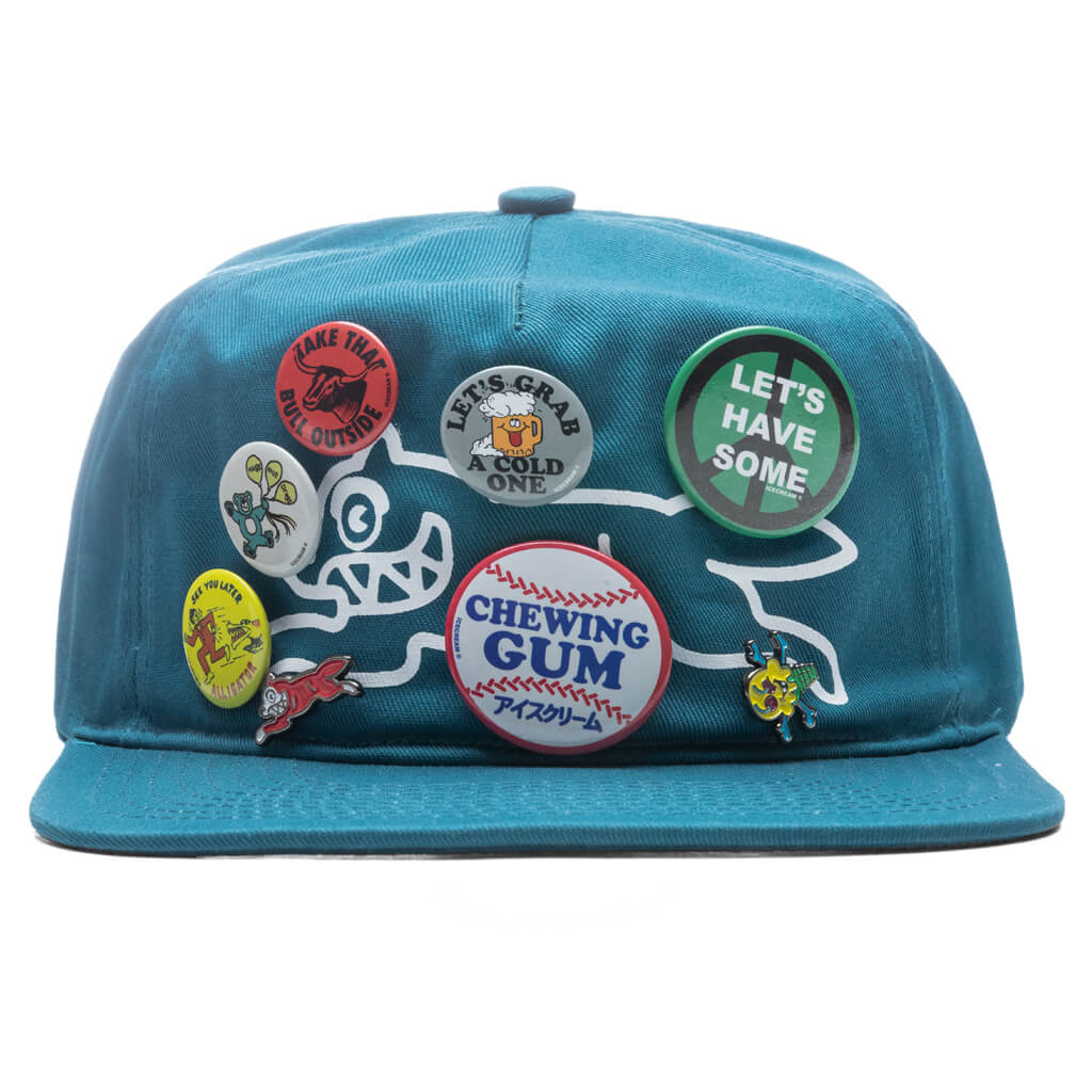Icecream takes on a distinct approach to the traditional trucker hat with the Just Visiting Trucker Hat. The silhouette features a twill construction with woven eyelets at the crown. An array of pins comprise the face, nodding to the brand’s signature motifs. A screen-printed running dog motif within those pins ties together the look.