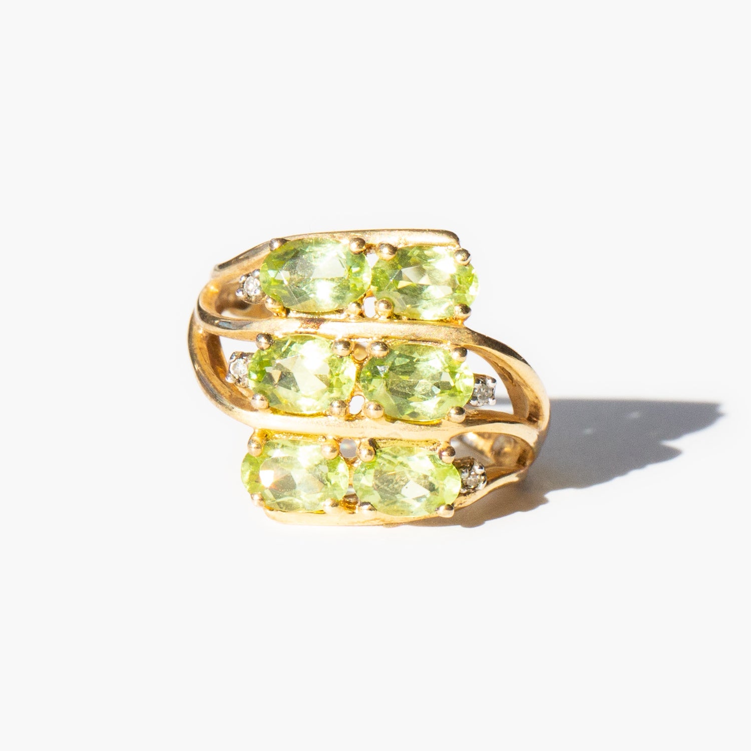 Gold wash sterling silver cocktail ring with sparkling lime crystals.