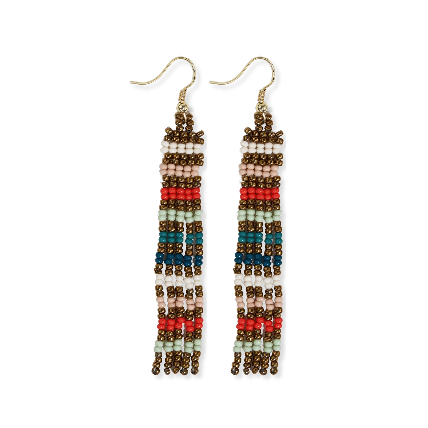 Melissa Horizontal Stripes Petite Beaded Fringe Earrings Teal + Poppy