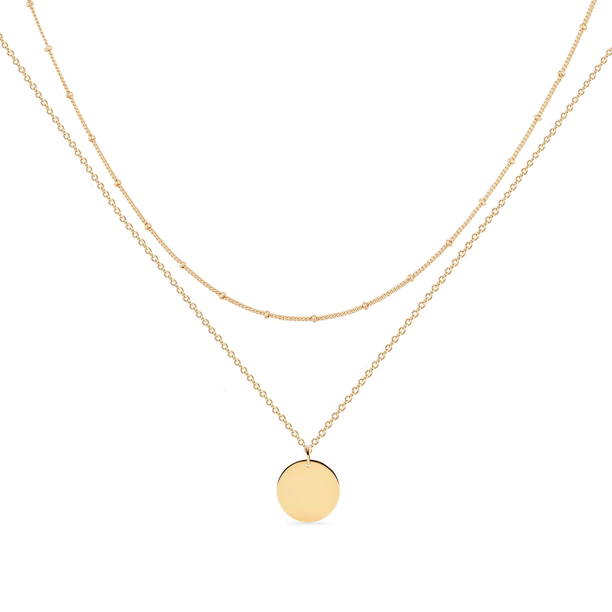 MEVECCO Gold Layered Necklace,18K Gold Disc/Circle Bead Chain Dainty Elegant Simple Layer Necklace for Women