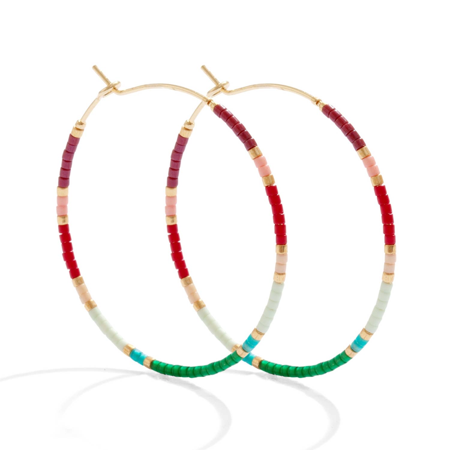 Delicate hoop earrings adorned with genuine Miyuki Delica beads from Japan. Offering a 1.5" drop makes these earrings perfect for just about any desired vibe! And the best part is the fun colors to choose from! -1.5" Drop -Brass -PLATED -Miyuki Delica Beads (from Japan), Assembled in China