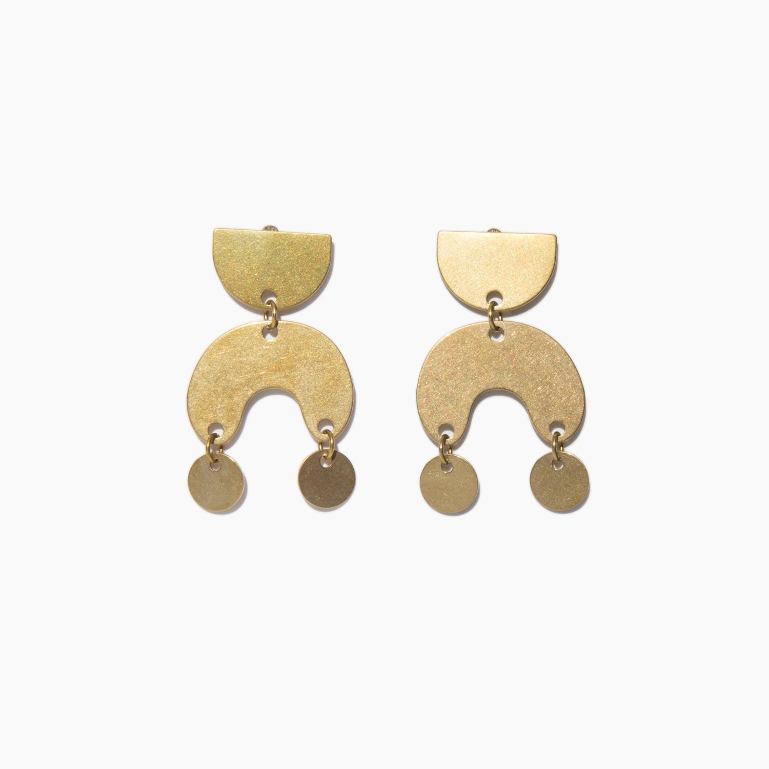 Matte brass statement earrings with sterling silver posts and ear-nuts.