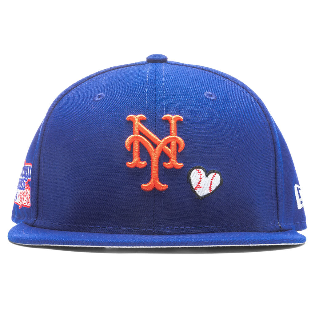 The New Era Team Heart 59FIFTY Fitted is a premium headwear silhouette for any collection. Composed of polyester, the hat spotlights an embroidered team logo at the face that includes a heart-shaped baseball at the front panels. A bold World Series patch is seen at the right-wearer’s side. An embroidered MLB Batterman logo is seen at the rear, with an embroidered New Era flag at the side and an embroidered quote at the rear. Woven eyelets are seen at the crown for added breathability, while the flat brim finishes the look.