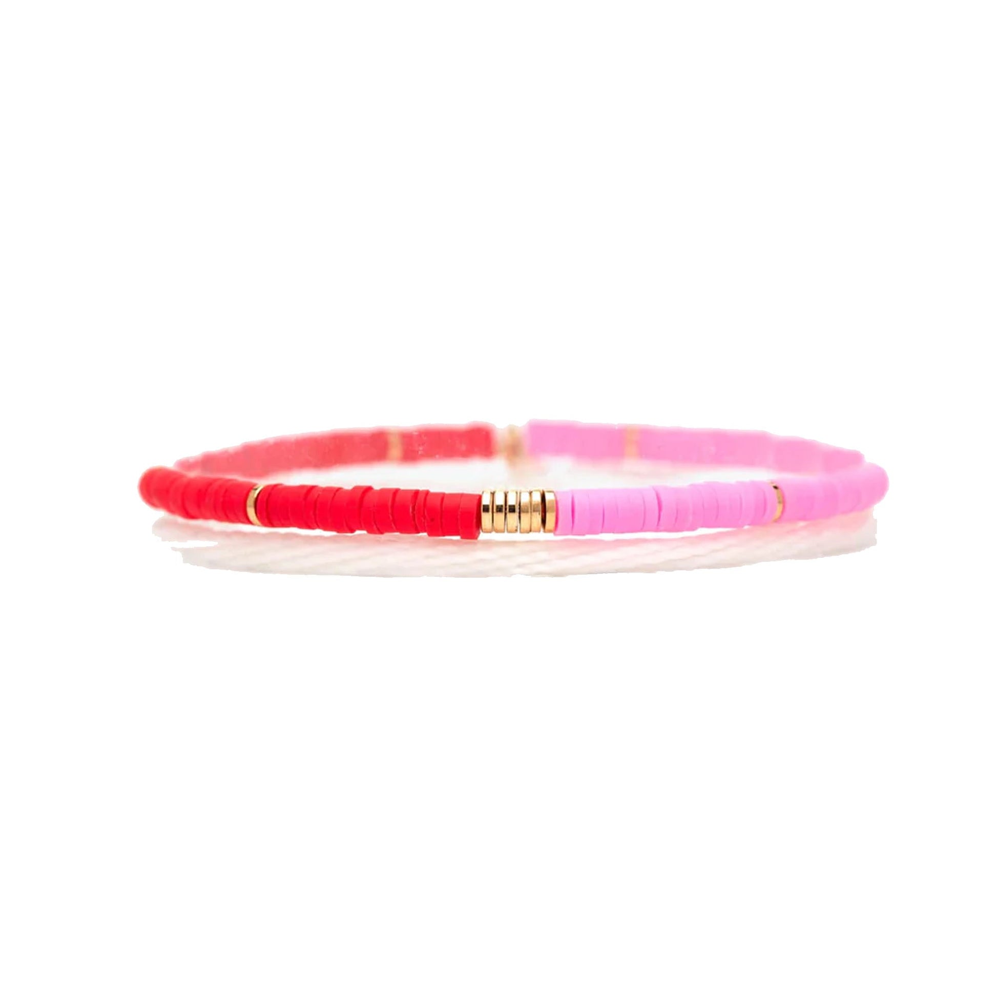 Pura Vida Pink and Red Vinyl Disc Stretch Bracelet