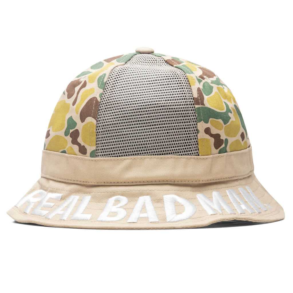 Real Bad Man’s latest arrivals include the Lost Hiker Bucket Hat. The silhouette is composed of a blend of cotton paired with mesh at the panels. The silhouette spotlights a camouflage print at the cotton panels, while embroidered branding resides at the brim for a finished design.