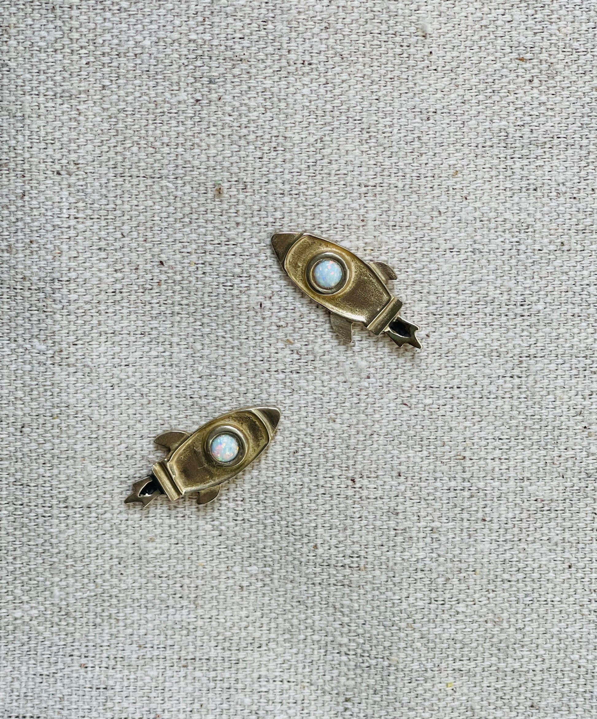 This pair features a 6mm opal and 3mm onyx cast in nickel-free brass with sterling silver posts.