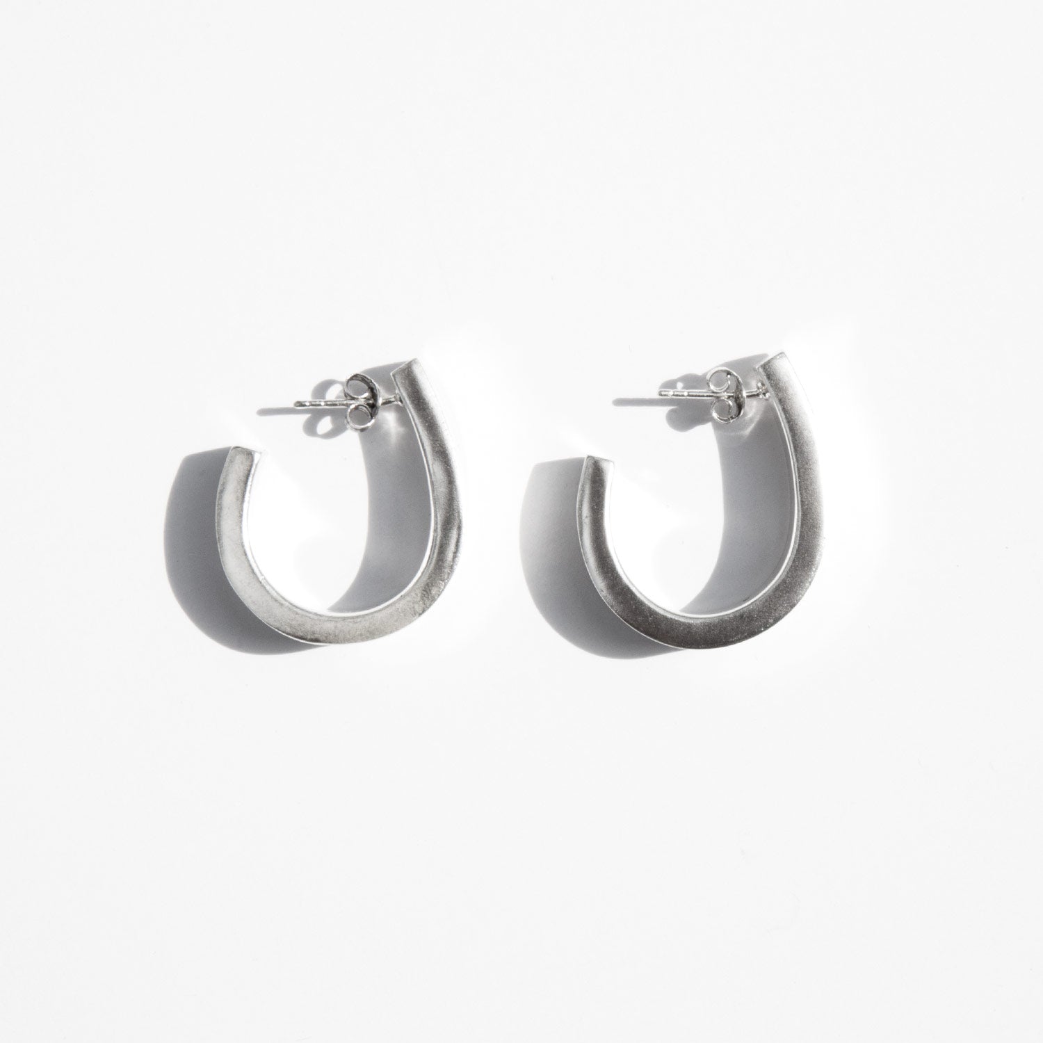 Sculptural and thick, lightweight, matte sterling silver hoop earrings.