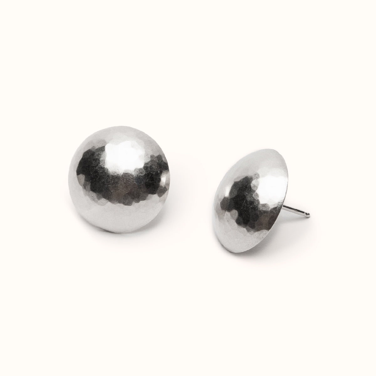 Gently faceted sterling silver posted dome earrings. Designed by Betsy & Iya and handcrafted in the studio attached to their Portland shop.