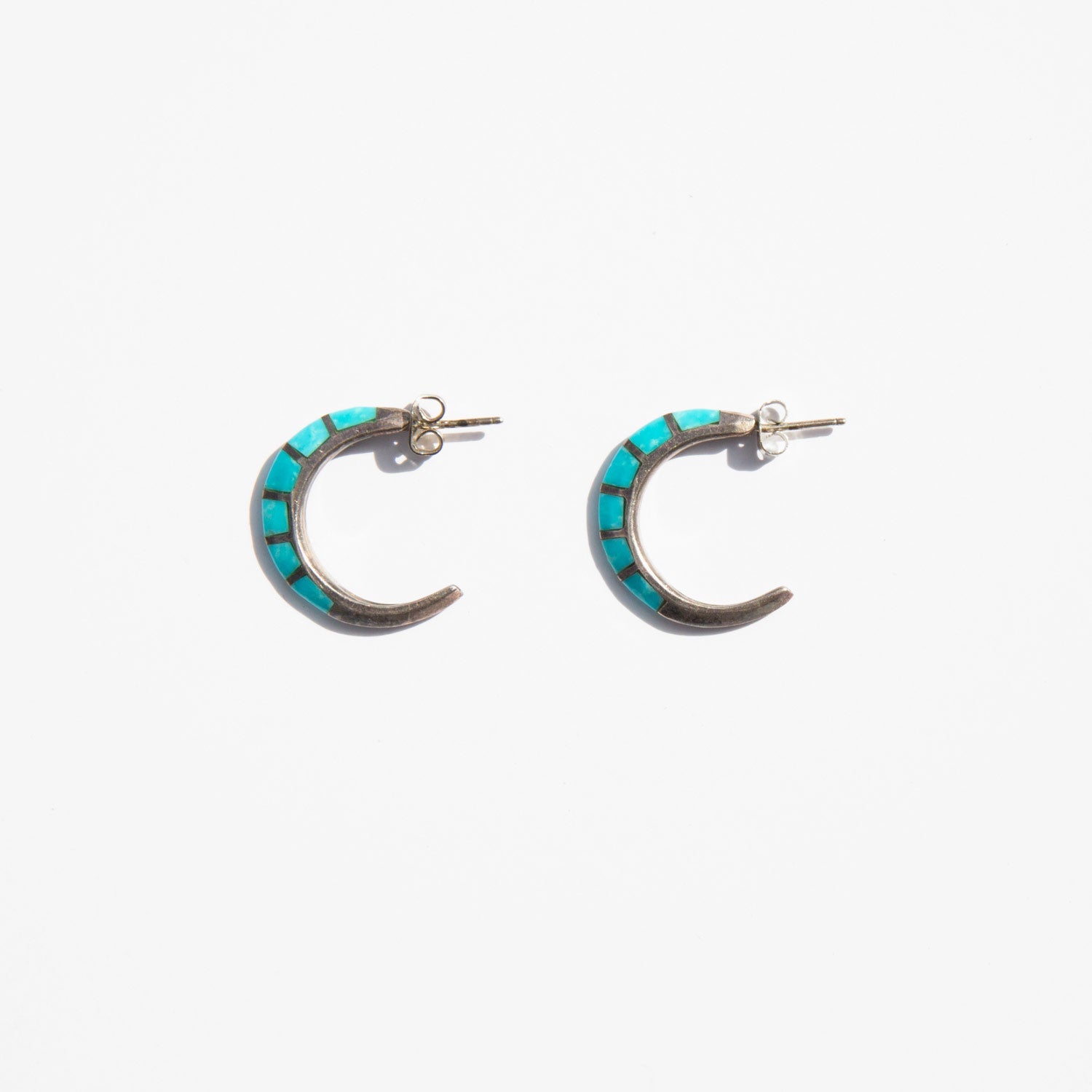Silver and Turquoise Stone Crescent Earrings