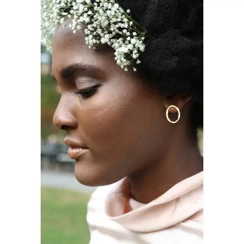 A pretty hand cut oval rests ever so lightly on your ear. We have updated this earring to now come as a post instead of a dangle, a nice update if we say so ourselves! This is a great everyday earring and is also available in sterling silver.