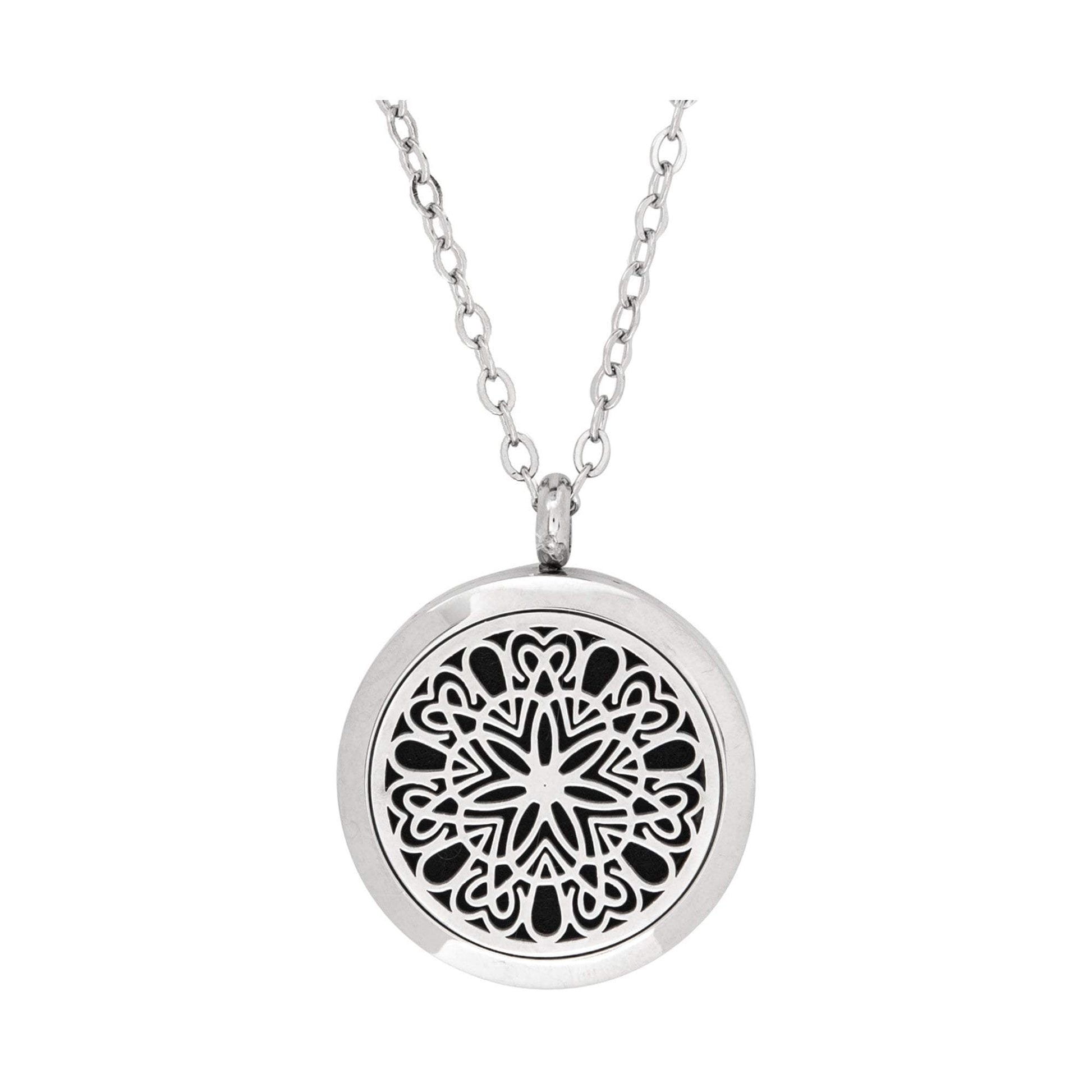 Enhance your retail clients’ overall well-being with the Serina and Company Stainless Steel Circle of Love Pendant. When an essential oil is applied to the wool pad inside, scent is diffused through vents in the locket, allowing clients to enjoy aromatherapeutic benefits any time and place. This beautifully constructed, high quality locket and chain are both made of surgical stainless steel. Chain is 18"L