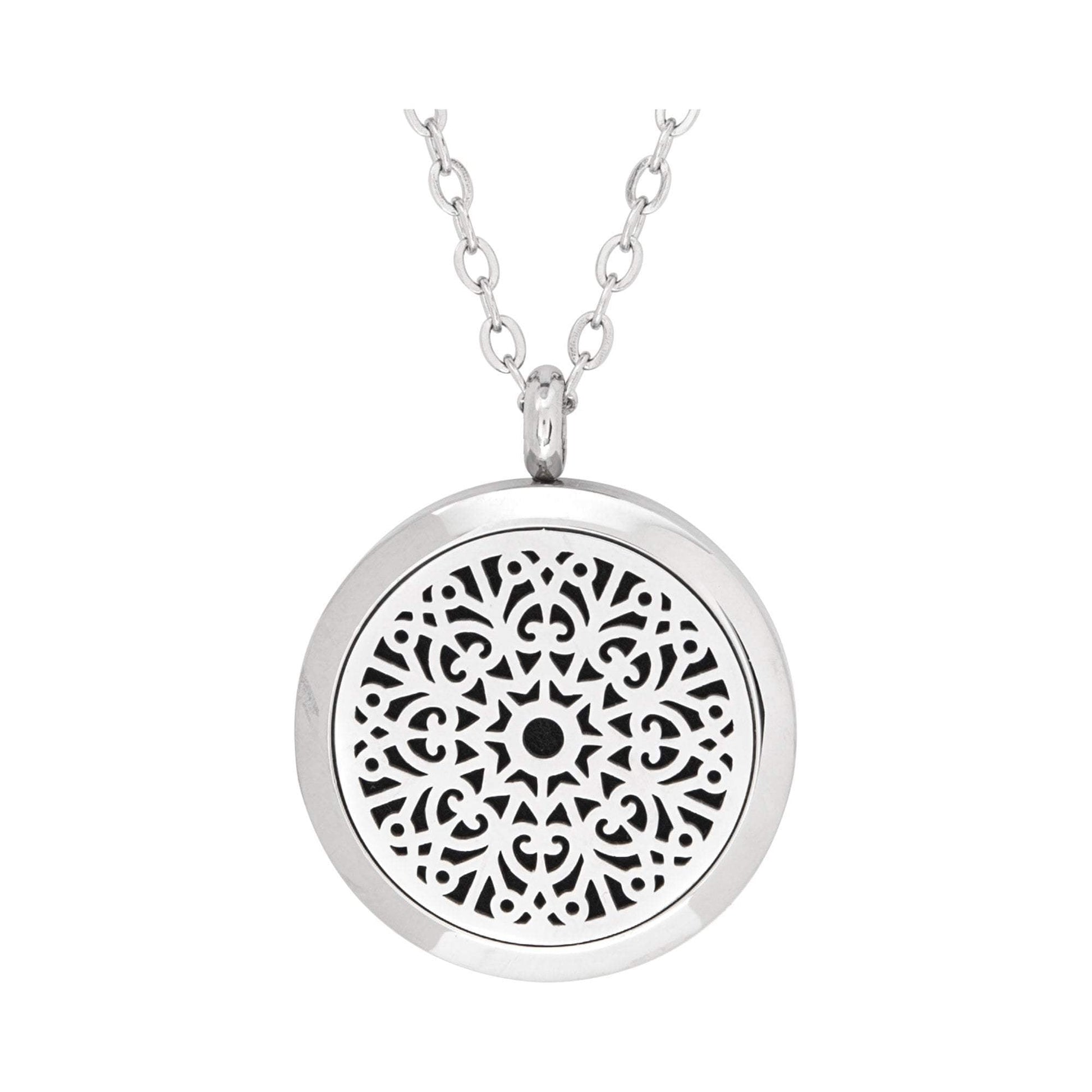 Enhance your retail clients’ overall well-being with the Serina and Company Stainless Steel Love Floral Pendant. When an essential oil is applied to the wool pad inside, scent is diffused through vents in the locket, allowing clients to enjoy aromatherapeutic benefits any time and place. This beautifully constructed, high quality locket and chain are both made of surgical stainless steel. Chain is 18"L