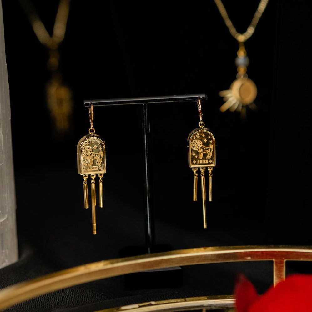 Crafted with precision in Austin, TX, the Zodiac Sign Dangle Earrings are plated with 14k gold over brass, giving them a luxurious touch. Their intricate design comes to life through a combination of 3D printing techniques and metal casting, resulting in an exquisite pair of earrings that exudes a mystical allure.